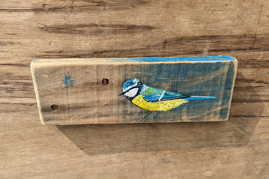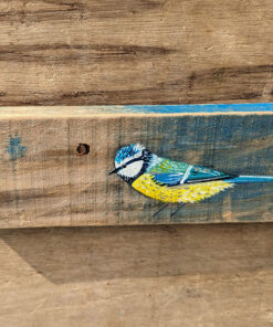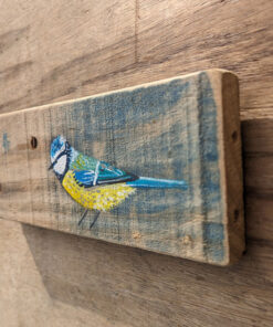 Original acrylic painting of a Blue tit. A gorgeous faded blue with a vibrant strip at the top and a really lovely texture. Complete with weathered rusty nails