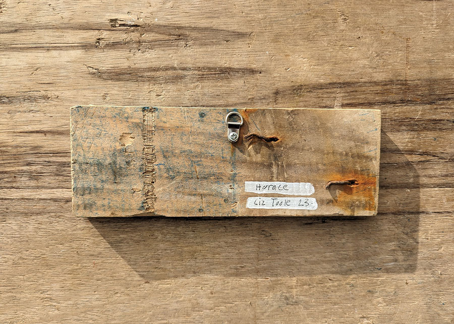 Liz signs the back of each piece and also writes the name of the piece.