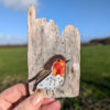 Original acrylic painting of a detil of a Robin. This is a lovely worn slice of Welsh driftwood with rustic texture