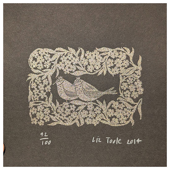 Limited edition 1 colour screenprint, printed in gold ink which glitters in the sunlight.