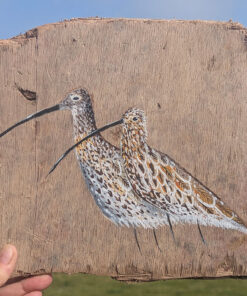 Original acrylic painting of a pair of Curlews. This is a beautiful, rare piece of Sussex driftwood, complete with a brass fixing attached to the side